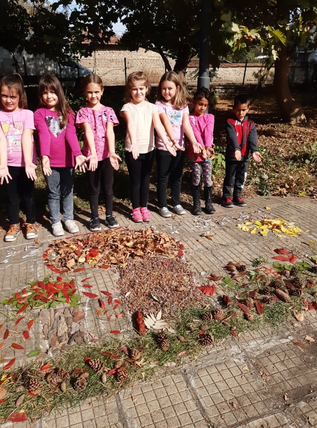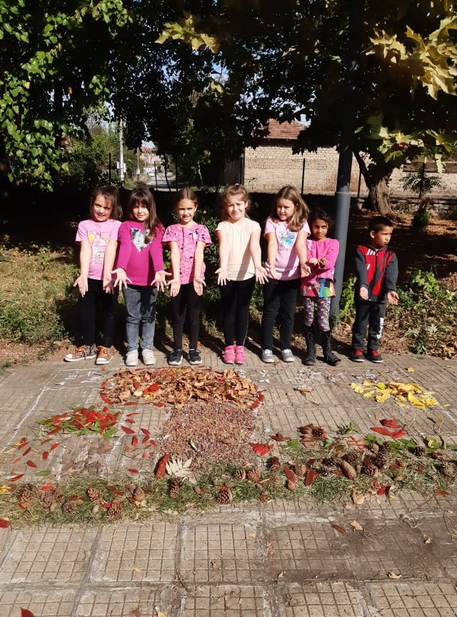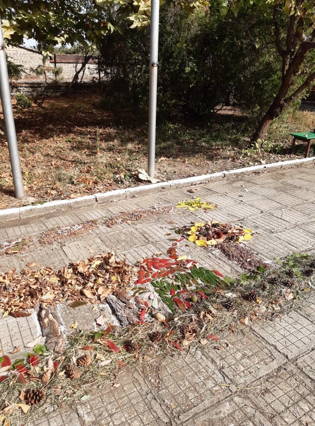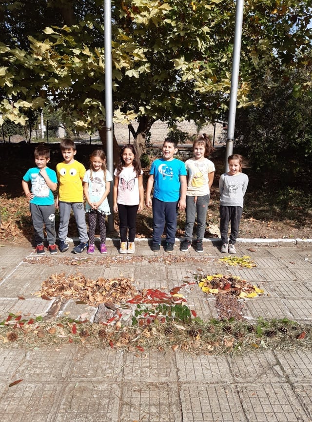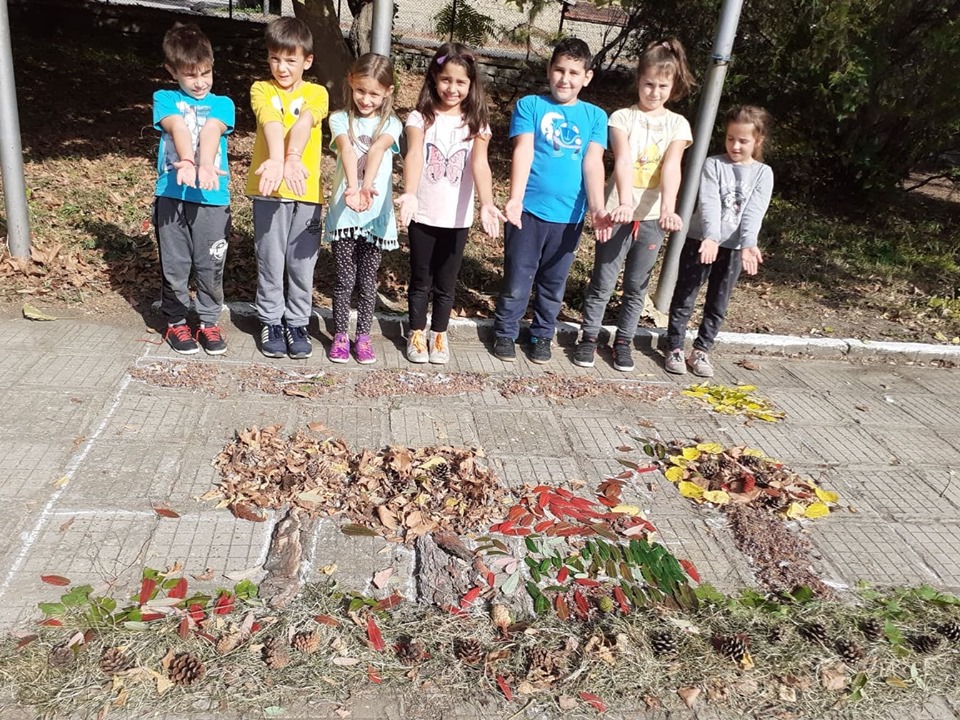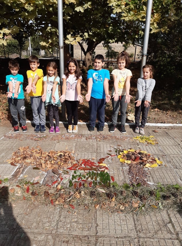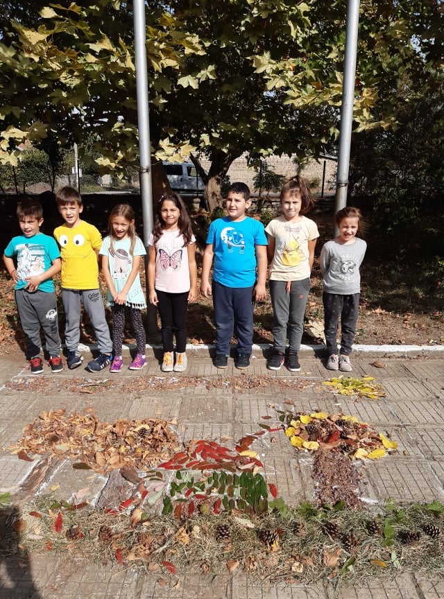 В час по изобразително изкуство учениците от II клас създадоха картина като използваха природни материали от нашия прекрасен училищен двор.