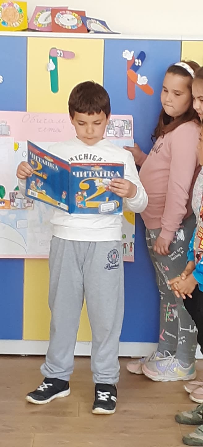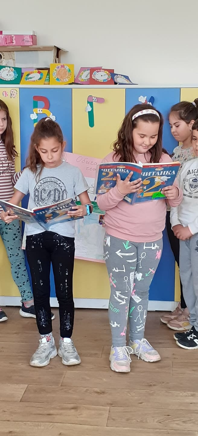 И днес кампанията „Четем заедно“ продължава. Първокласниците представиха любими герои от приказки, а учениците от втори клас четоха откъси от най-интересните произведения, показаха ни илюстрации към тях и изпълниха драматизация.
