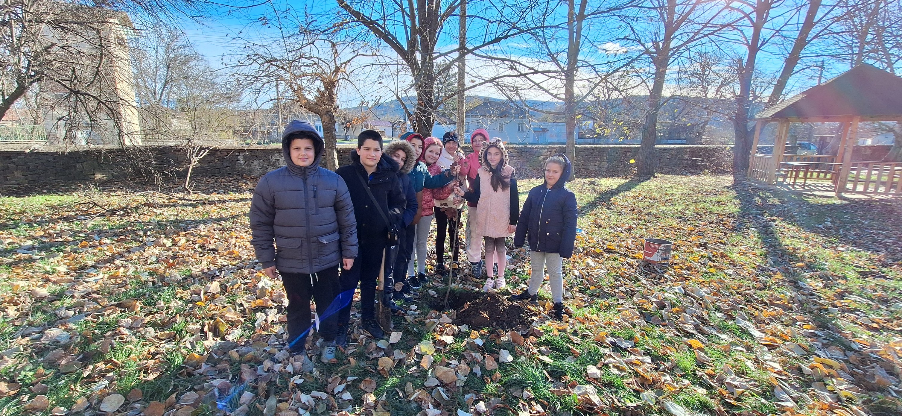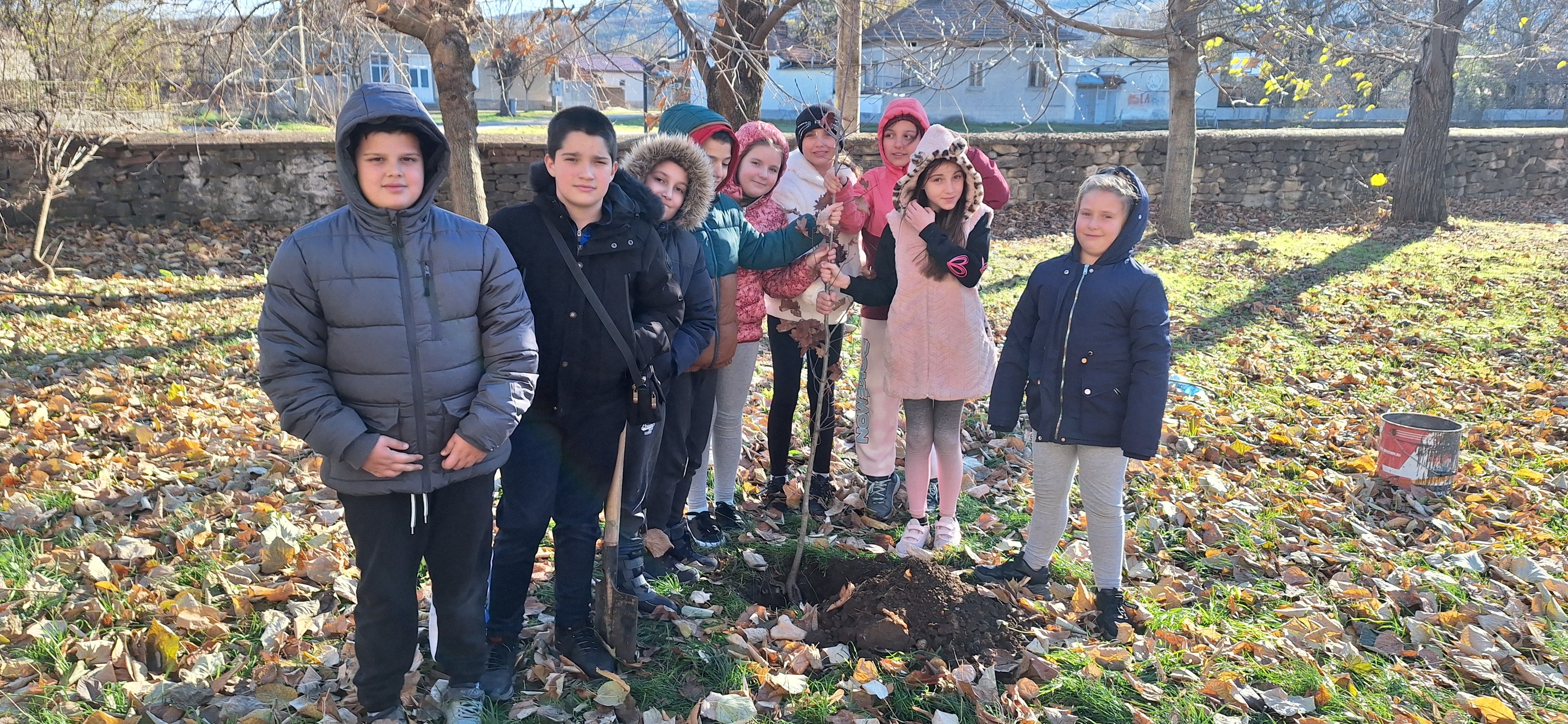 Послучай празника в двора на нашето училище посадихме червен дъб.