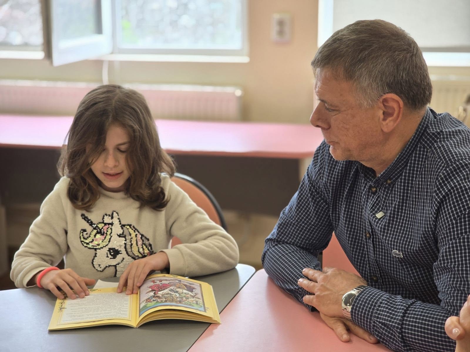 Заедно с петокласничката Елена, по чиято покана бяхме в Първомайци, прочетохме на глас приказката „Сливи за смет“. Изразителното ѝ четене ни накара да обещаем, че отново ще гостуваме в това чудесно училище, този път, за да присъстваме на изявите и на други негови възпитаници.