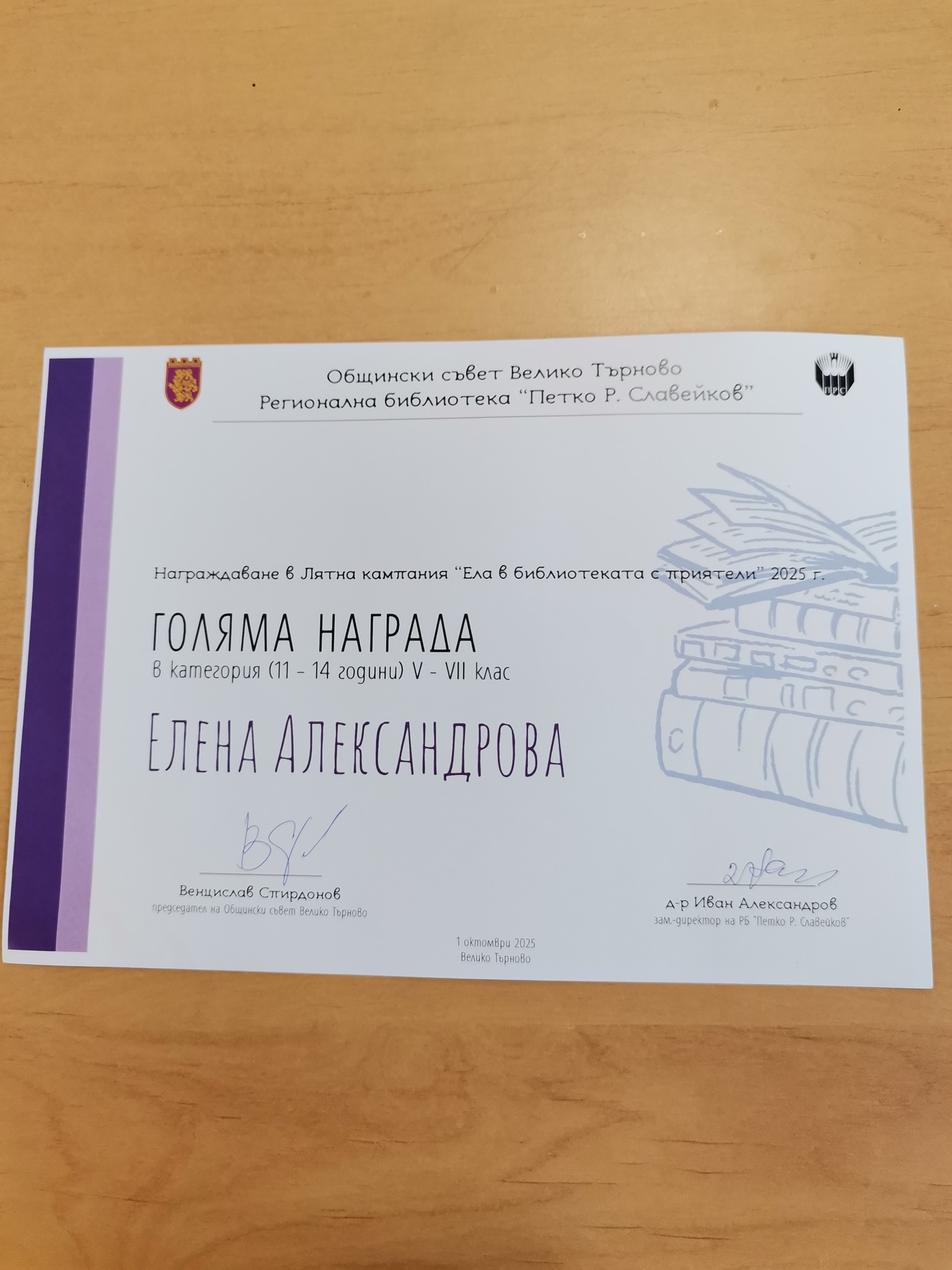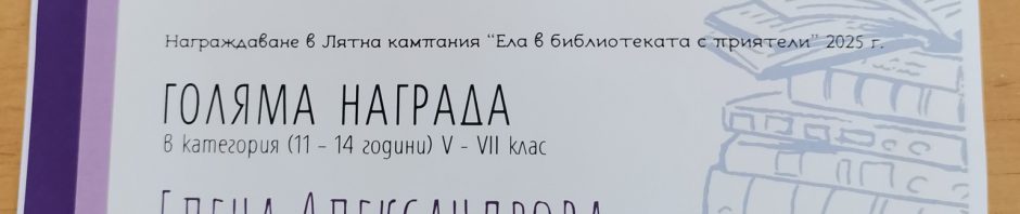 На 1 октомври Регионална библиотека „Петко Р. Славейков“ – Велико Търново тържествено обяви победителите от деветото издание на Лятната кампания „Ела в библиотеката с приятели“. От 3 юни до 15 септември стотици ученици от областта се включиха в инициативата, насърчаваща любовта към четенето и книгите.