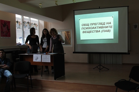 ПРОЕКТ BG051PO001-4.2.05 „Да направим училището привлекателно за младите хора” с ръководител г-жа К. Мишинова. Четири екипа от обучители на връстници, преминали обучение за превенция на злоупотребата с психоактивни вещества сред младите хора, проведоха занятия с учениците от VІІІ Г, VІІІ Д, VІІІ Е и VІІІ Ж класове. Темите бяха: „Алкохол и тютюнопушене”, „Марихуаната”, „Вдигащи дроги” и „Свалящи дроги”. Часовете бяха добре организирани с подходяща информация, представена чрез презентации, постери, игри и свободни дискусии. Учениците от клуба – Сияна, Диляна, Жана, Калоян, Щилян, Илияна, Доника, Деница, Гергана, Ева и Димитър, бяха подпомагани от по-опитните обучители Петя, Събина и Русина. Специални благодарности за фотографа на събитието – Елена от VІІІ Е клас.