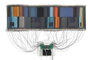 Инженерът и художник Маги Орт е директор на International Fashion Machines, компания, специализирана в областта на електронния текстил. Това, което виждате тук е килим отпечатан с топло-чувствително термохромно мастило. Когато електричеството протича през него, цветовете се променят.