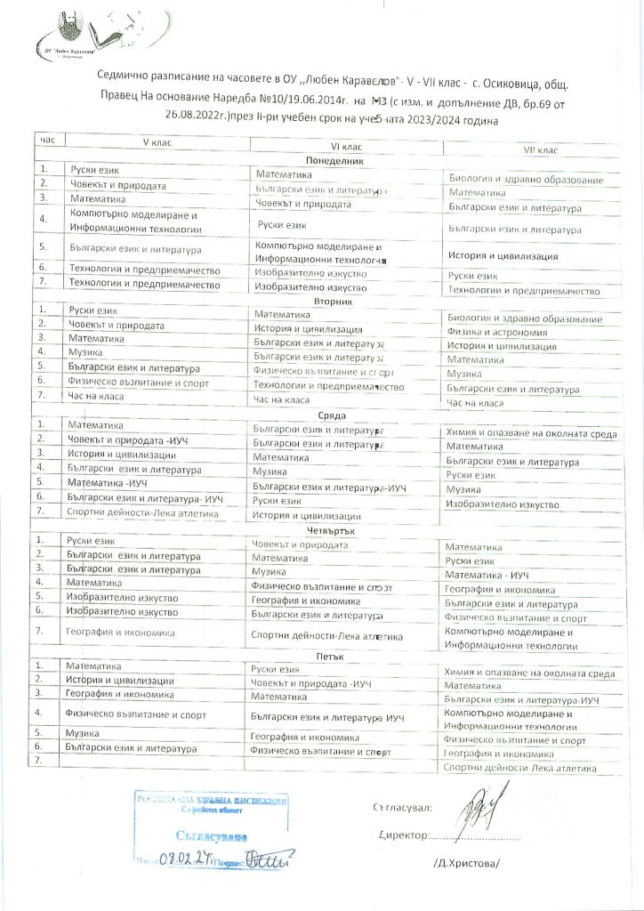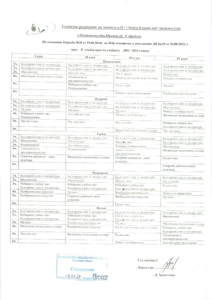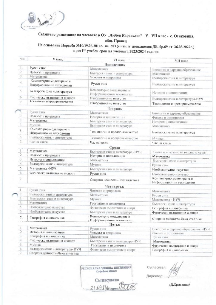 Седмично разписание
