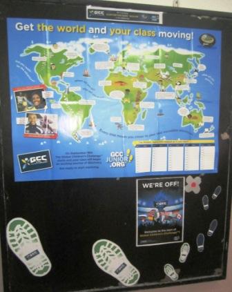 В одобрените училища в класовете, сред които е и нашият клас, ще пристигнат кашончета с крачкомери, специална тетрадка за всеки ученик, в която да записва данните си и карта за стената, където се вижда маршрута на околосветското пътешествие. Всичко това се предоставя напълно безплатно на училището.