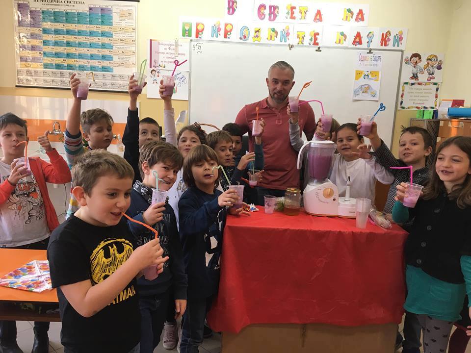 Боровинково смути за “добро утро” , приготвено “на живо” от Крис – таткото на Ани, редовен участник в Седмица на бащата. Децата разбраха, че съществуват много и различни варианти за приготвяне на напитката, но в общи линии всеки е свободен да импровизира и да подбира съставките според личните си вкусови предпочитания и здравословни нужди..Благодарим му за вкусното участие!
