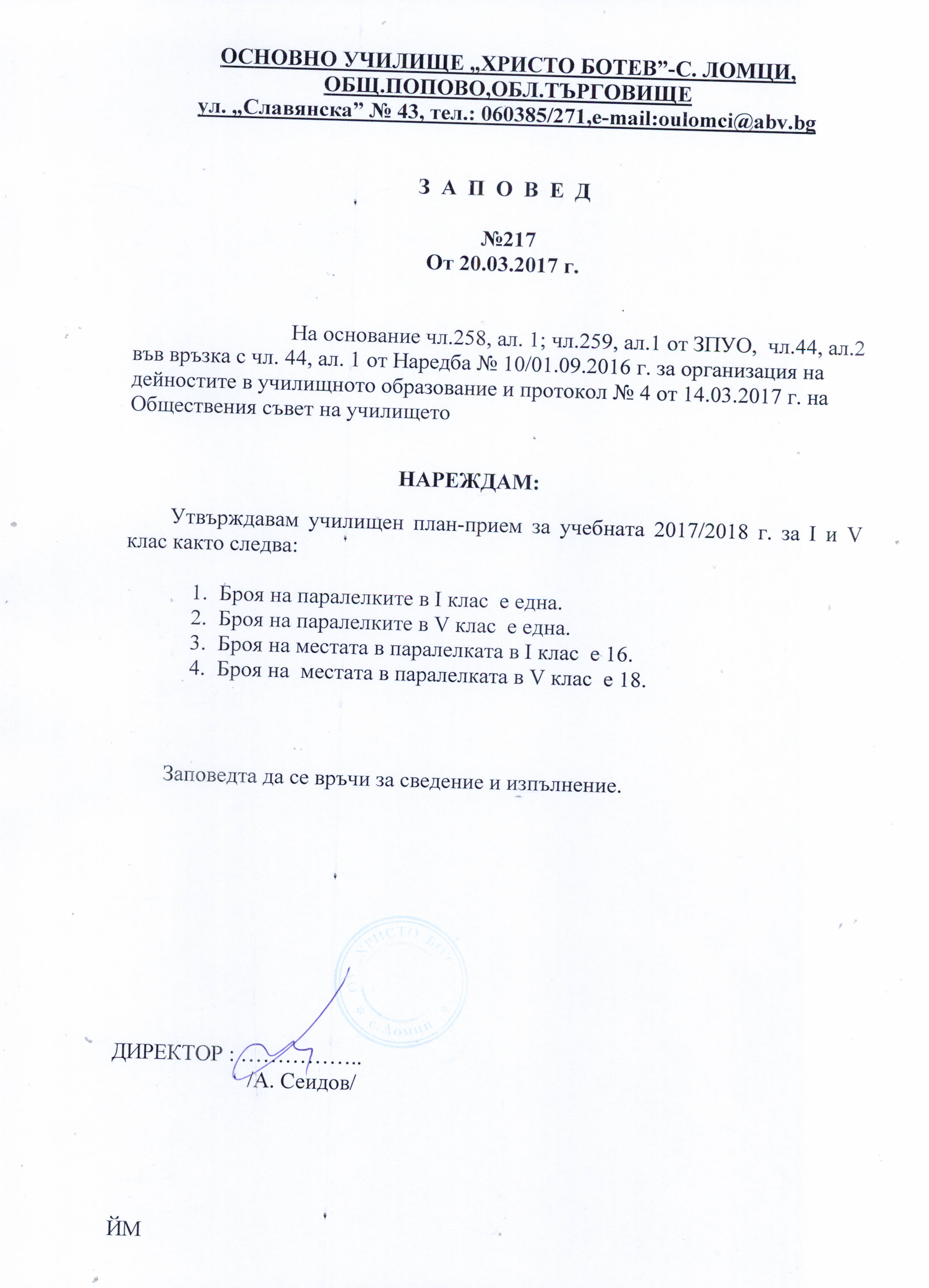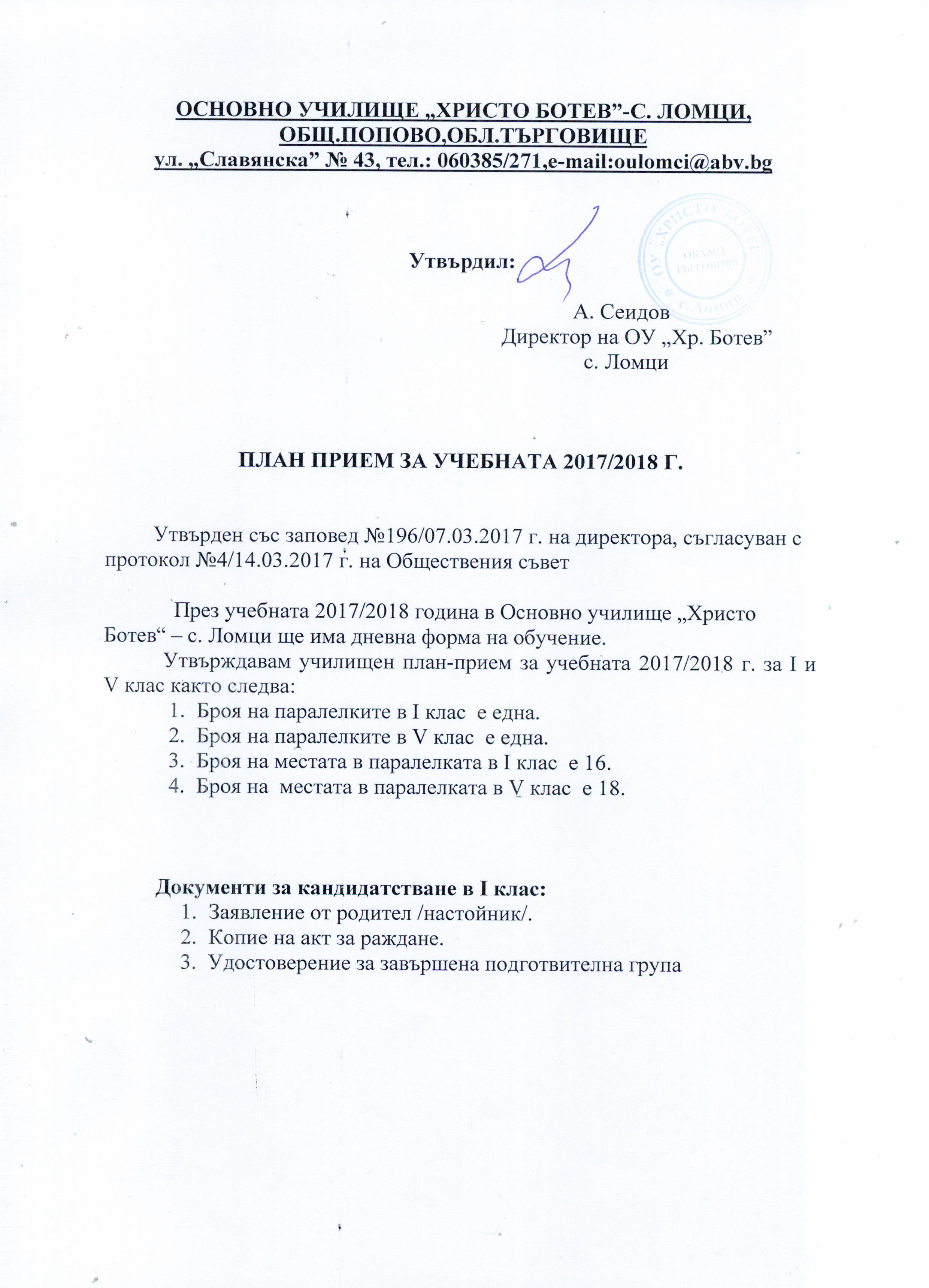 Основно училище „ Христо Ботев“ с. Ломци, общ. Попово, обл. Търговище