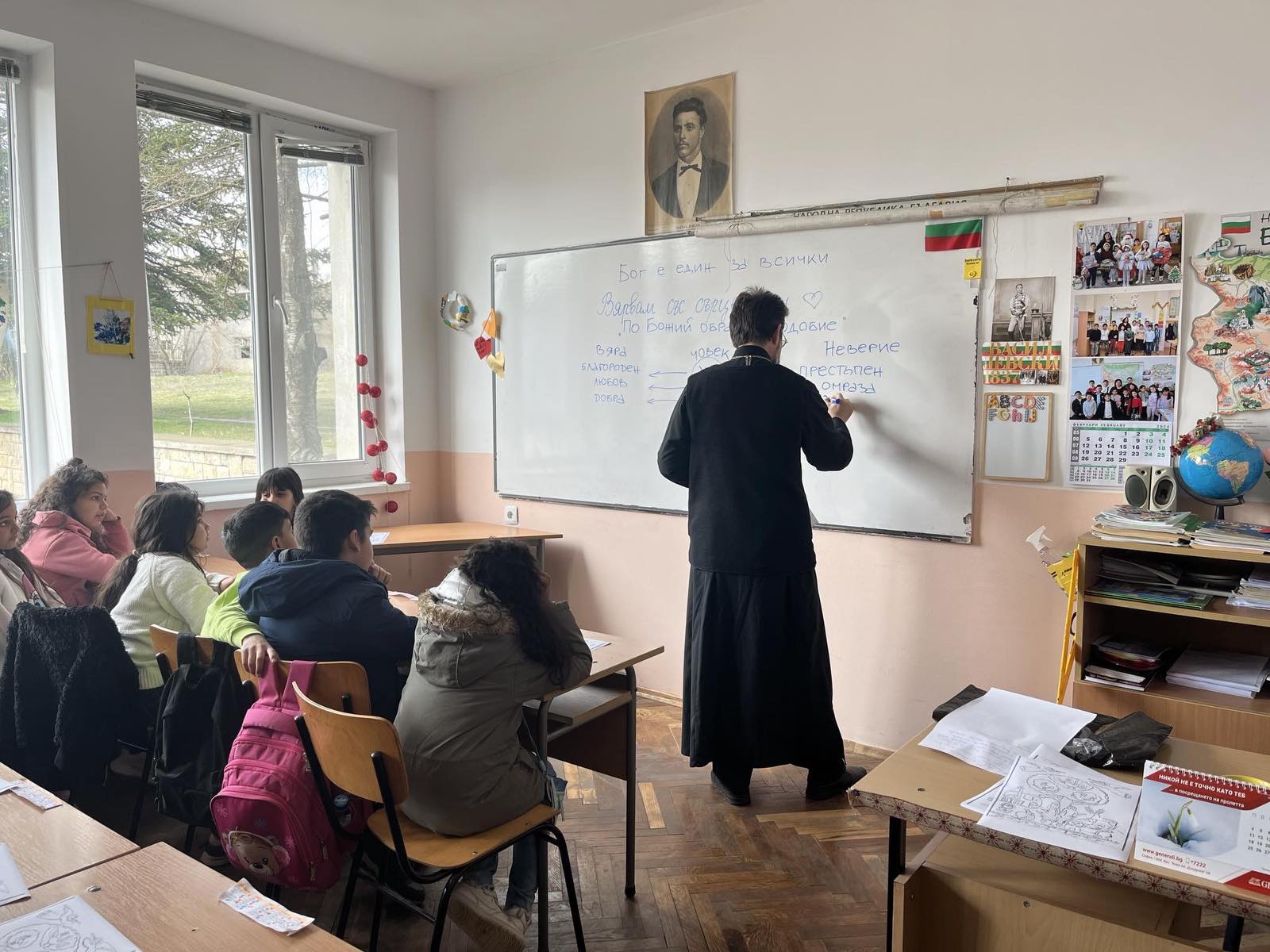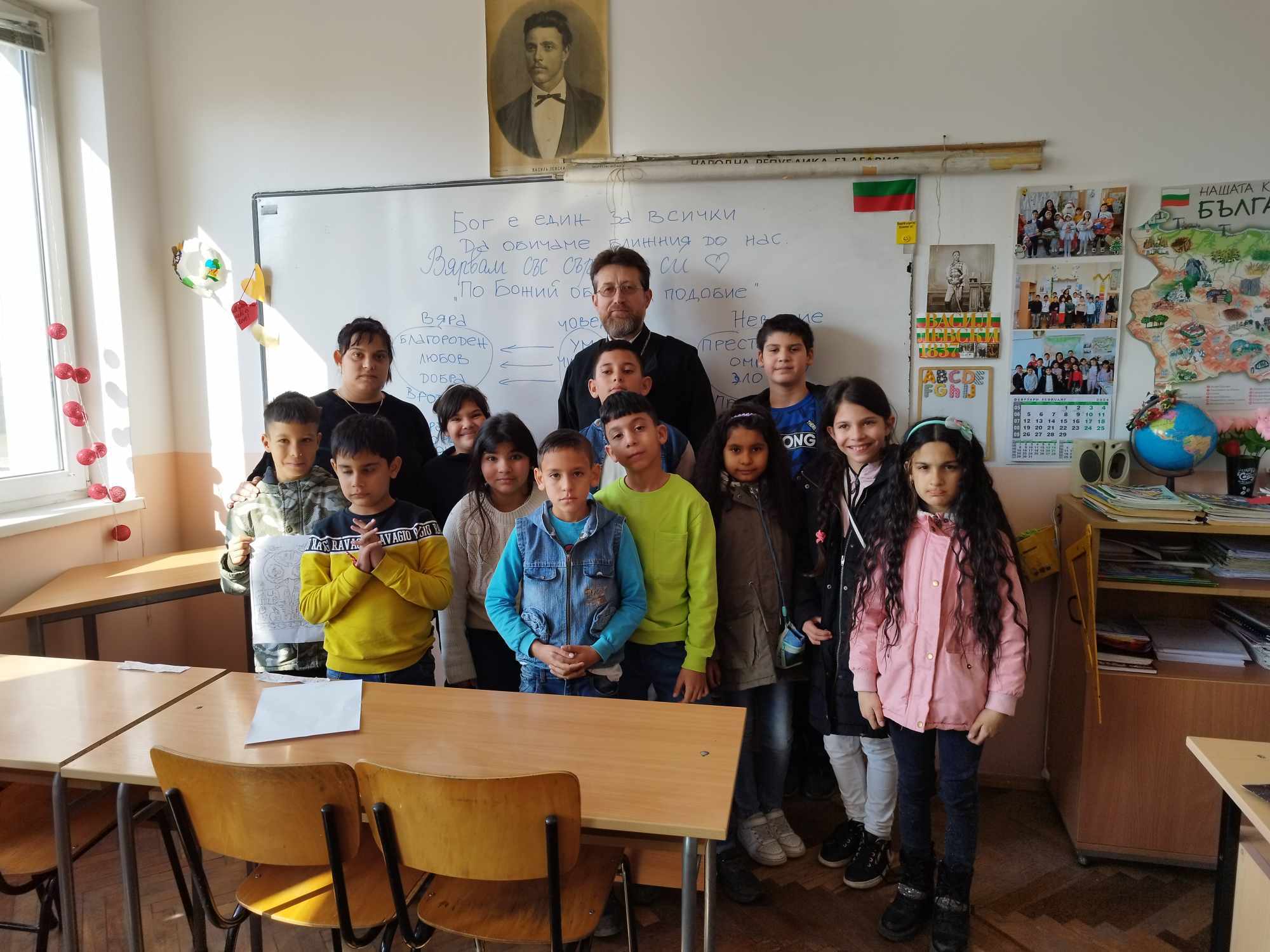 На 20.02.2024 г. се проведе среща-разговор на тема „Вярвам със сърцето си“ с ученици от клуб „Религия и съвремие“ при ОбУ “ Васил Левски“ с. Михалич. Гостува им свещеник Станислав Друмев, който говори непринудено, на близък до децата език на теми за вярата, за доброто и злото, за милосърдието и грижата за ближните. Отец Станислав отговаряше на детските въпроси, обясняваше и нагледно на дъската чертаеше схеми като един истински духовен учител. Накрая на срещата всички достигнаха до извода, че вярващият човек е този, който носи Бог в сърцето си, умее да прощава, обича и помага на другите и винаги „Благодари“ на Бога.