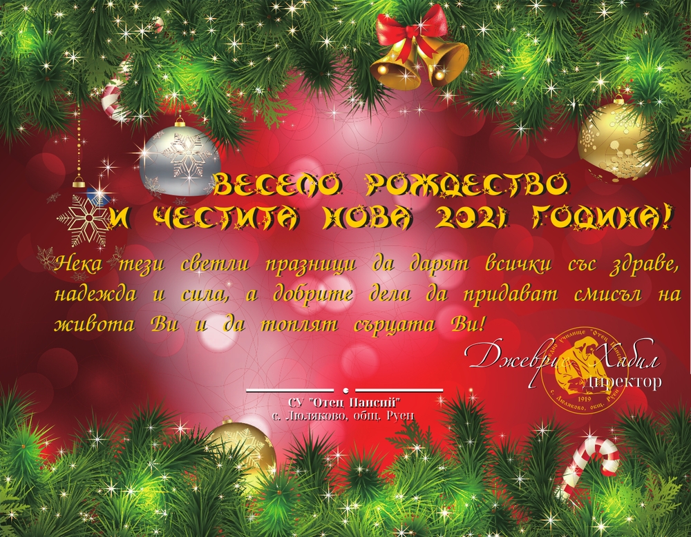 От името на СУ „Отец Паисий“ пожелаваме на всички светли празници и нека 2021 година да ни донесе здраве, вяра и надежда за едно по-добро бъдеще.