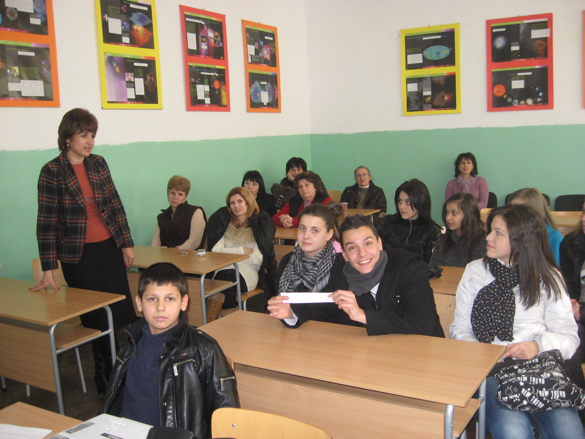 IMG_4120    Чрез вълнуваща презентация участниците разказаха за заниманията в клуба и посещенията в градовете Дупница, София и Самоков. Проведе се и състезание, в което имаше въпроси като: Кой е основателят на Природонаучния музей в София?, Къде за първи път е проведено богослужение на български език?, Кога град София е обявен за столица на България? и др. За показаните знания учениците бяха поздравени от директора на училището- госпожа Костадинова.