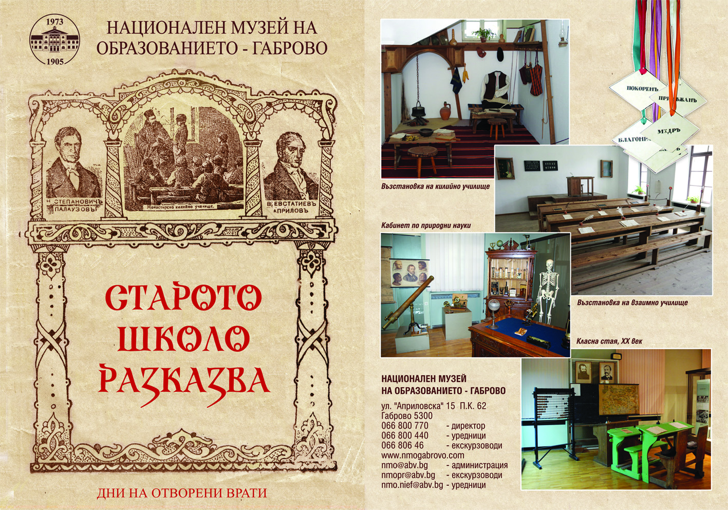 Националният музей на образованието в Габрово има удоволствието да покани Вас и Вашите ученици на 12 октомври (петък) в Деня на отворени врати „Старото школо разказва”.