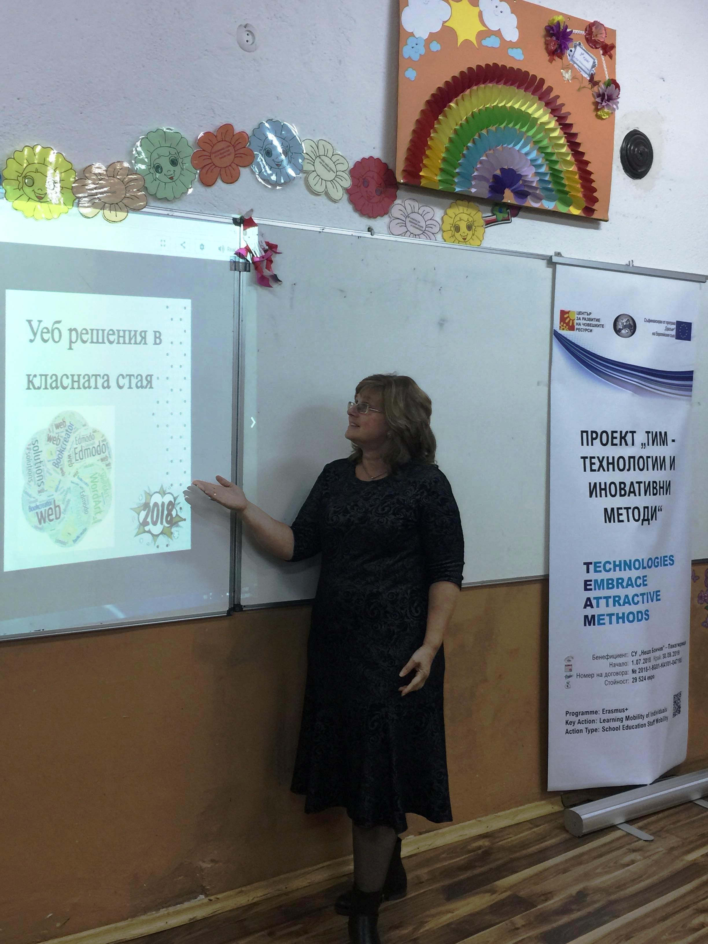 На 4 декември в СУ „Нешо Бончев“ – Панагюрище се проведе обучение по проект „ТИМ – Технологии и Иновативни Методи“ на тема “Уеб решения в класната стая“.