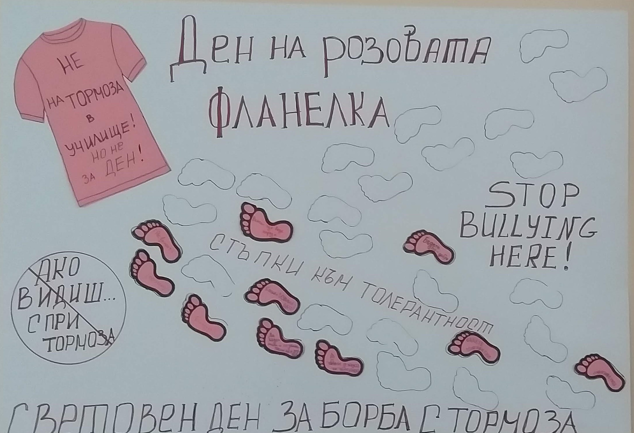 В последната сряда на месец февруари (23.02.2022г.) се отбелязва „Денят на розовата фланелка“. Тази инициатива започва през 2007 година, когато две момчета в Канада застават зад гърба на свой приятел и съученик, който бил тормозен, защото дошъл на училище с розово поло. Дейвид Шепърт и Травис Прайс решават да подкрепят своя приятел, като си купуват розови тениски и на следващия ден раздават на всички в училище, които дръзват да се включат в инициативата им. Отбелязването на Денят всяка последна сряда от месец февруари ни напомня, че тормоз в училището съществува и ни подканя да помислим как да постъпим, ако разберем, че някой ученик е тормозен от друг. Защото има как и можем да се противопоставяме на тормоза ВСЕКИ ДЕН.