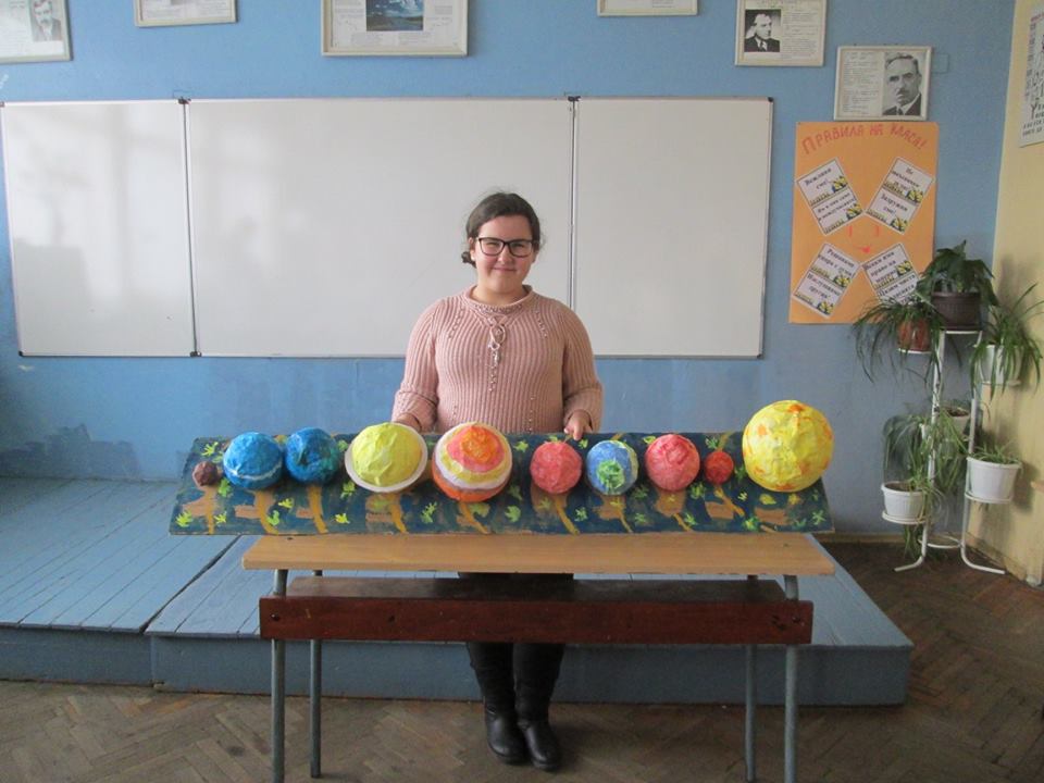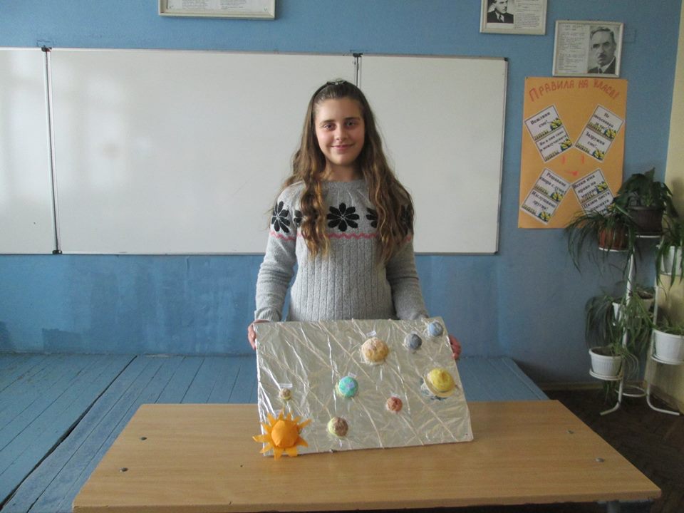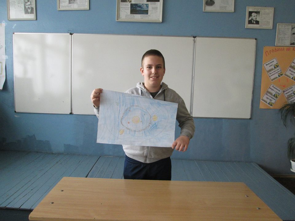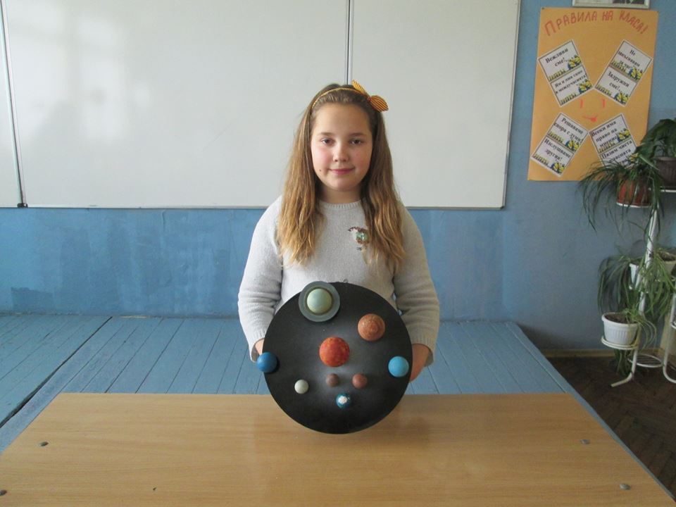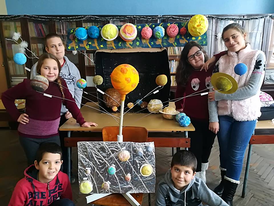 Слънчевата система, сътворена от сръчните ръце на петокласниците: Александър Денев, Десислава Яръмова, Дамяна Савова, Мария Цонева, Патрисия Иванова, Марин Тонев, и Ясен Христов