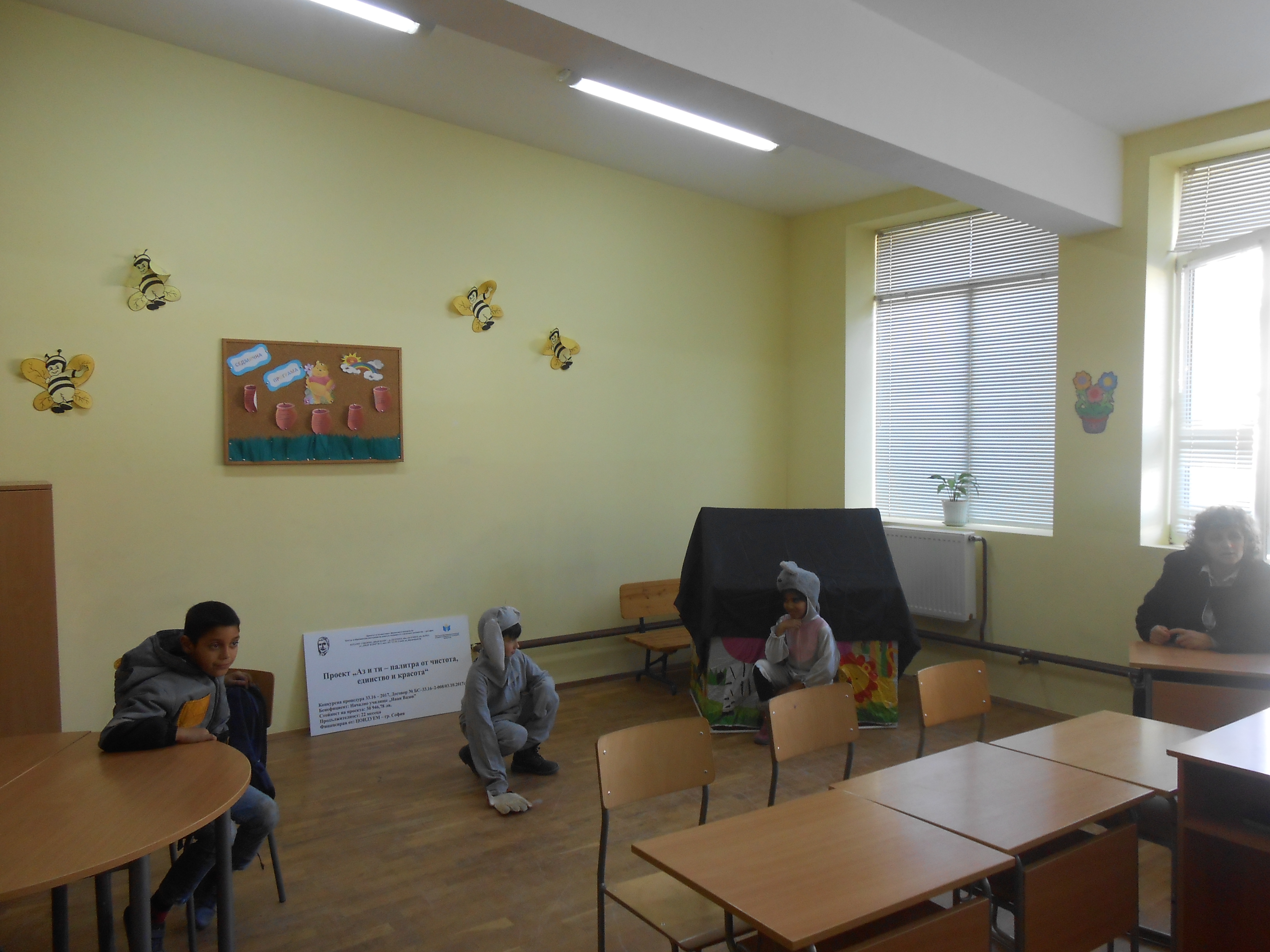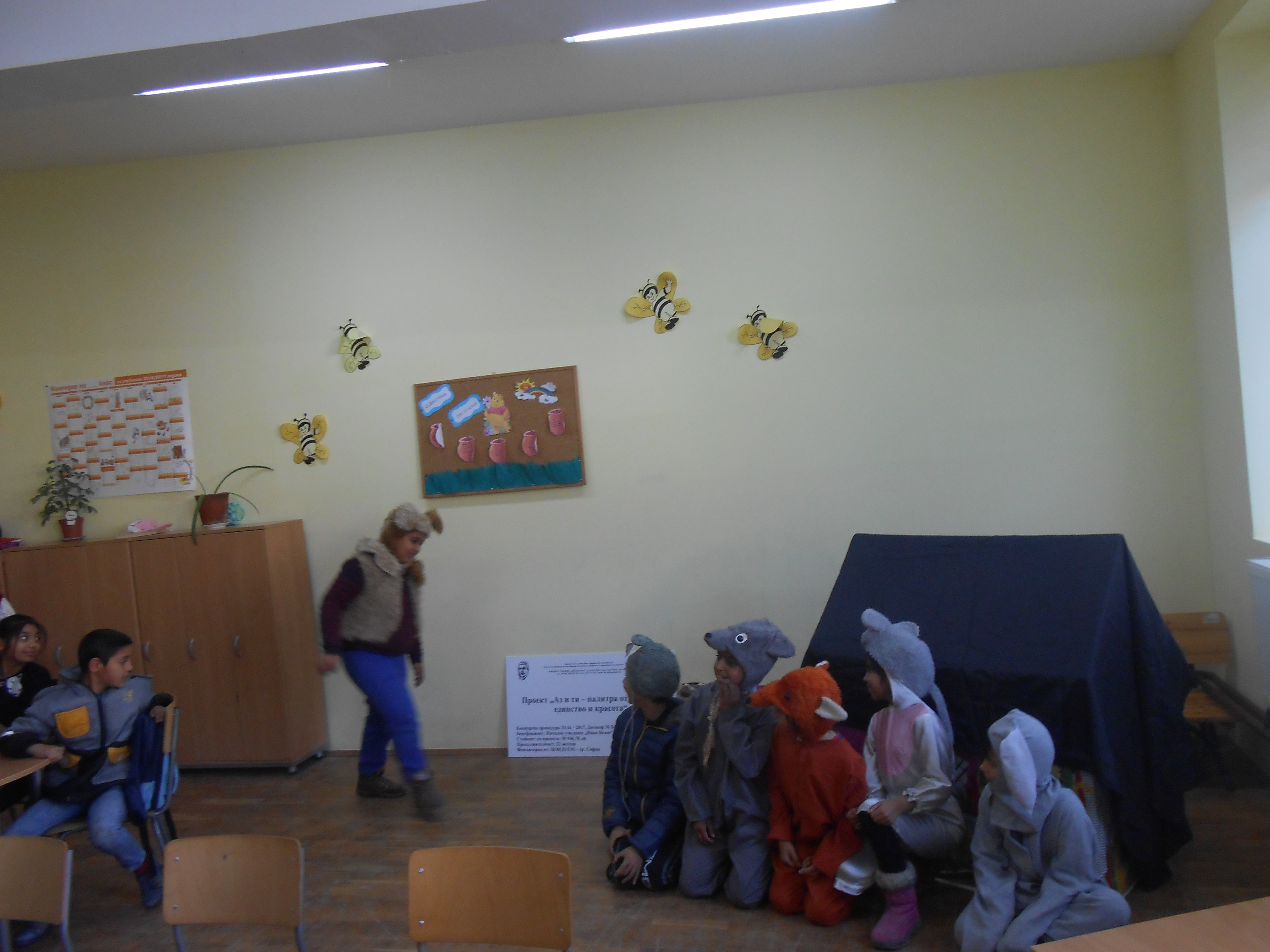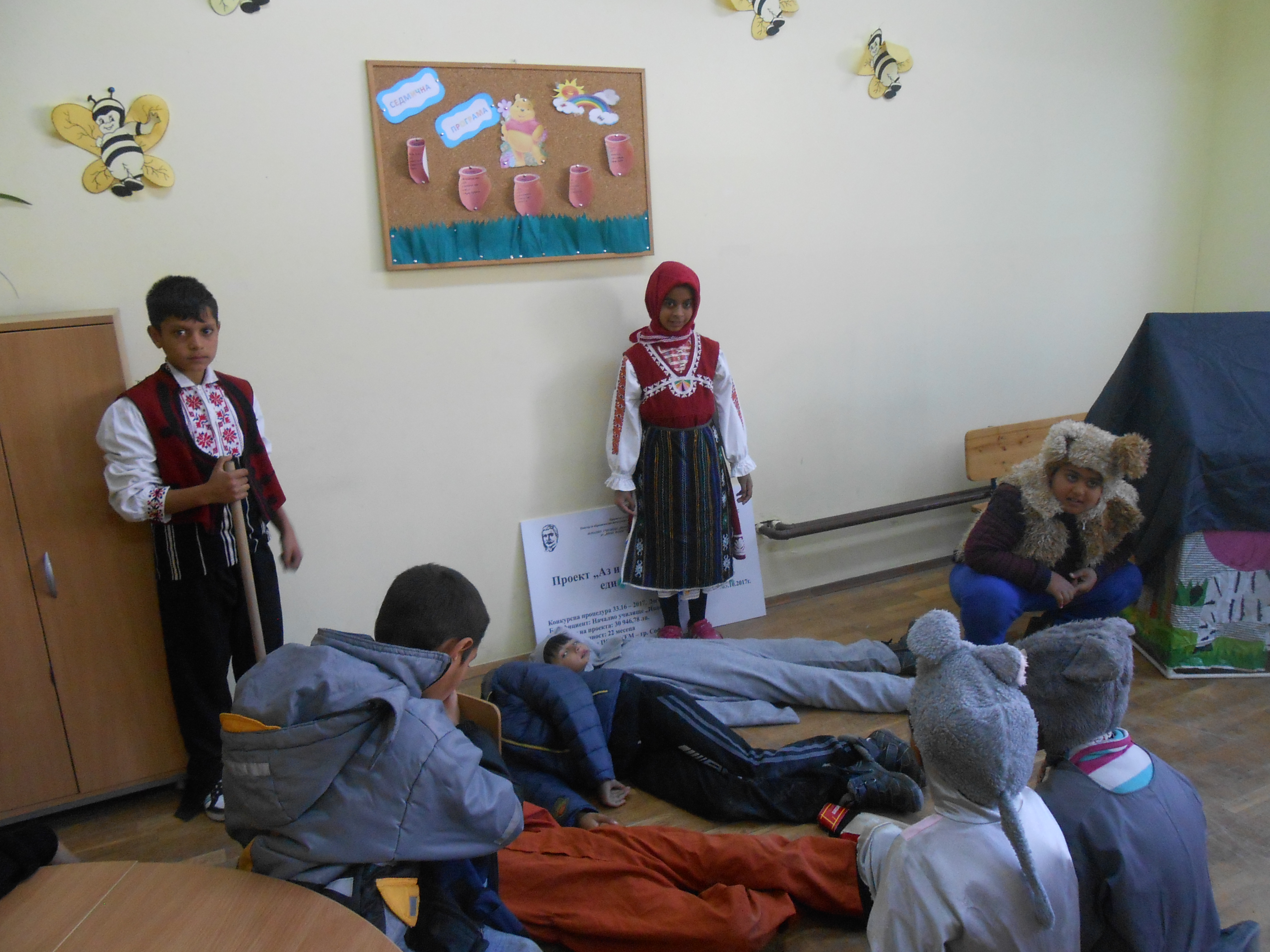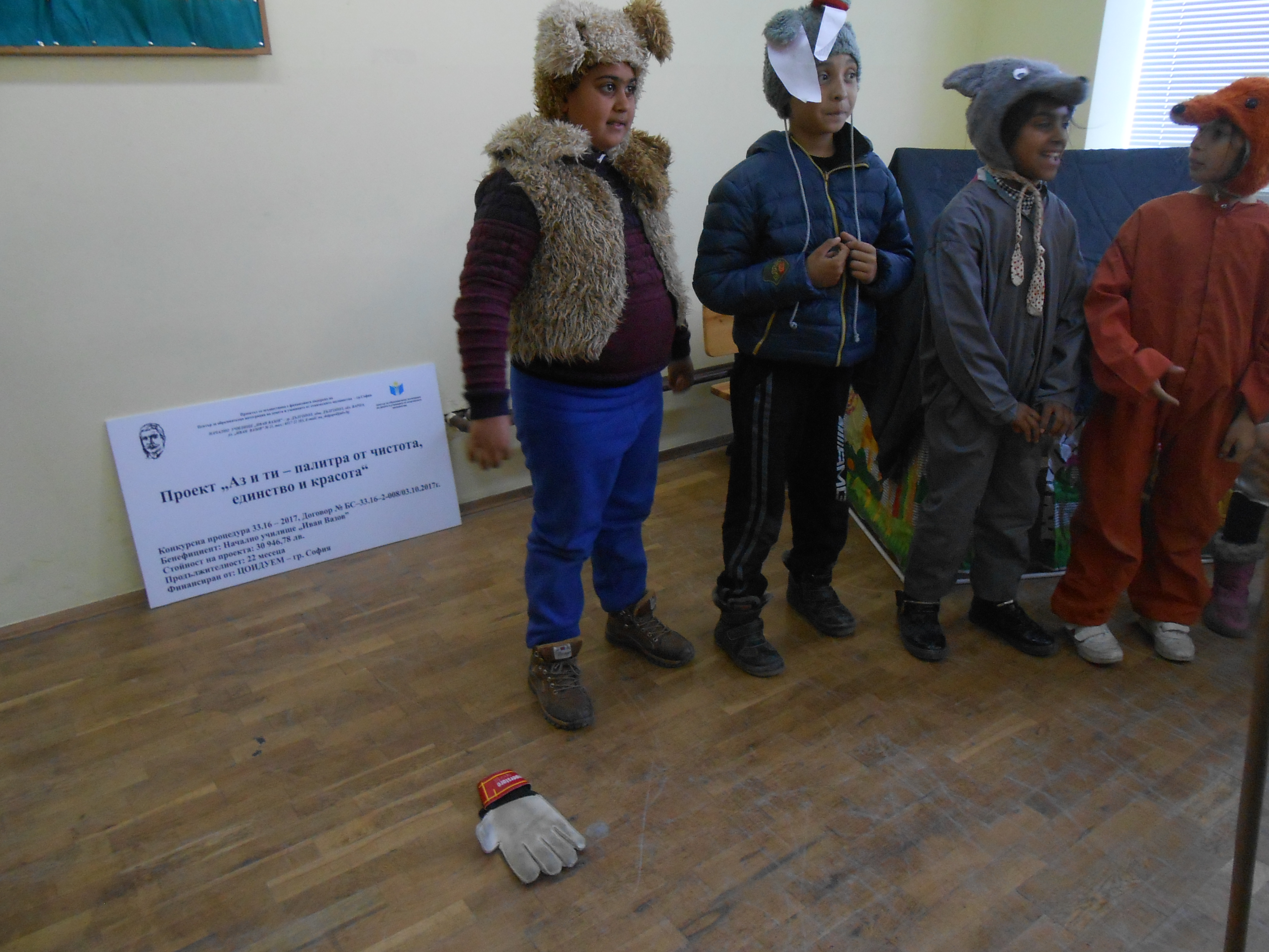Драматизация „Дядовата ръкавичка“, представена от група за допълнително обучение по БЕЛ по Проект „Аз и ти – палитра от чистота, единство и красота”, Конкурсна процедура 33.16 – 2017, Договор № БС – 33.16 – 2 – 008/03.10.2017г., финансиран от ЦОИДУЕМ – София.