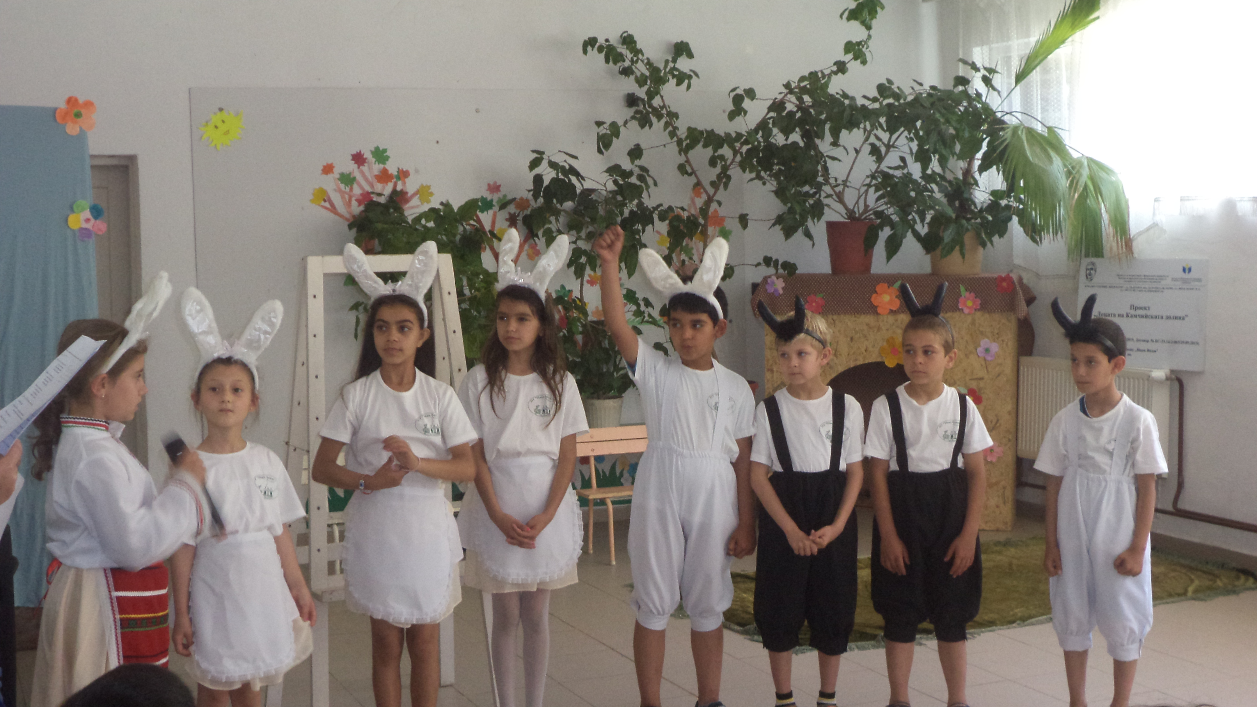 Без категория Проект „Децата на Камчийската долина“, финансиран от ЦОИДУЕМ – гр. София Галерия 14.06.2016 Начално училище "Иван Вазов" - гр. Дългопол Театрална постановка „Край огнището“ Театрална постановка „Вълкът и седемте козлета“ – клуб „Стани герой от моята приказка“