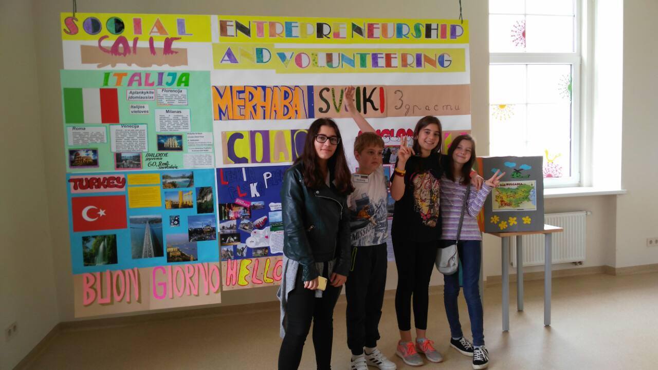 През периода 30 май до 5 юни се проведе международна ученическа визита в Литва по проект „SOCIAL ENTREPRENEURSHIP AND VOLUNTEERING“, финансиран от програма Еразъм + на Европейския съюз. Ученици от България, Турция, Италия, Англия и Литва твориха, пяха и играха заедно. Програмата бе много наситена с дейности: