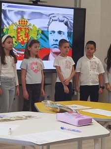 С учениците от начален етап проведохме открит урок, посветен на Васил Левски, в който децата се запознаха с неговия живот и дело чрез беседа и мултимедийна презентация. В хода на урока децата изпълниха песни, посветени на Апостола на свободата, и работиха с подготвени работни листове. Чрез разнообразните дейности учениците затвърдиха знанията си и изразиха своето уважение към великия български герой.![]()