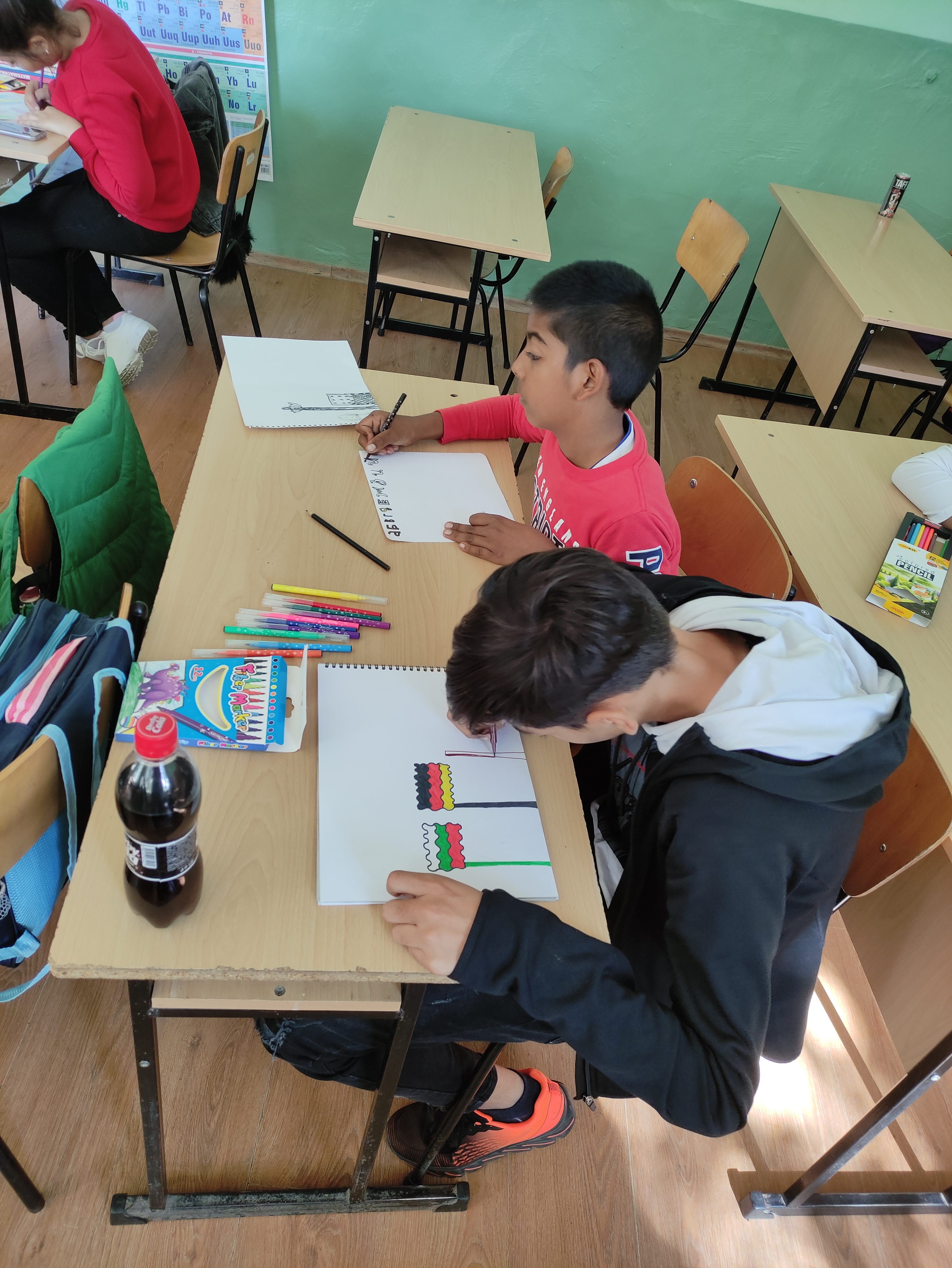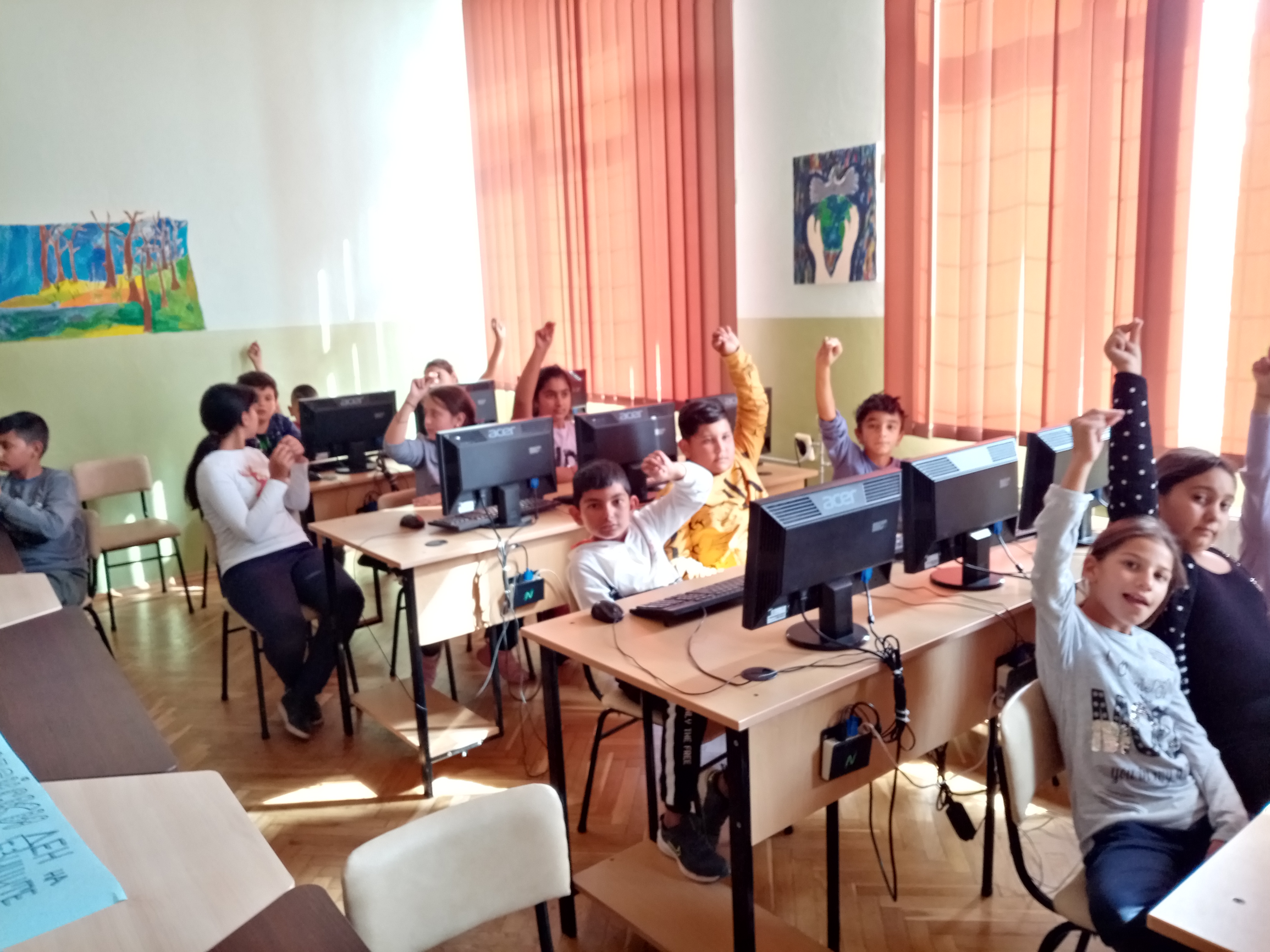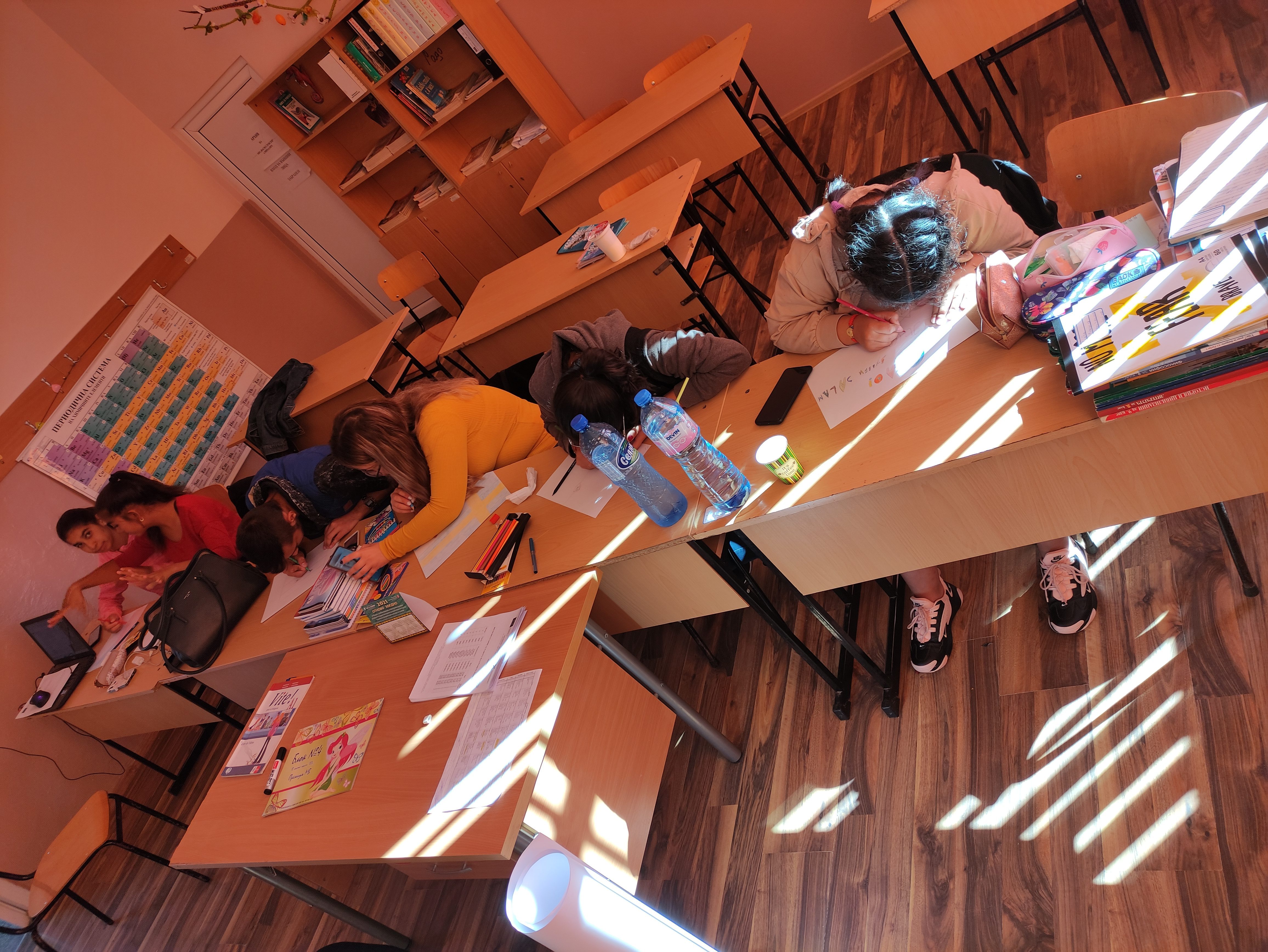 В часовете по английски език учениците от начален и прогимназиален етап изобразиха в рисунки какво е за тях многообразието от езици в Европа. Част от рисунките обединиха в постер. Чрез беседи те достигнаха до извода, че изучаването на езици само ще им е от полза и ще им даде възможност за създаване на нови приятелства и контакти.
