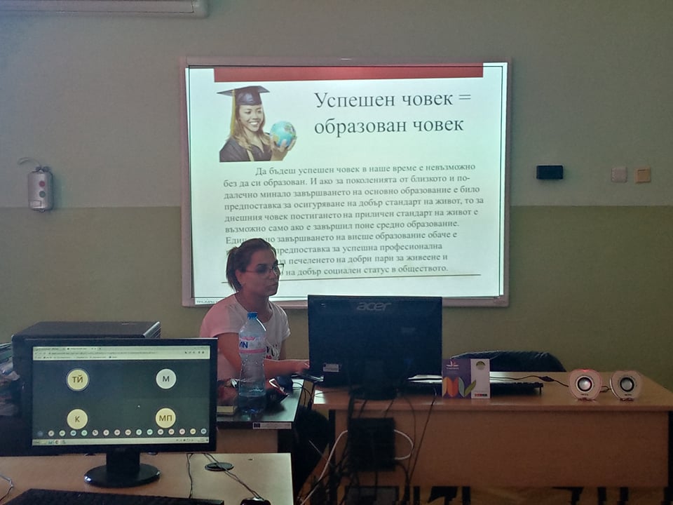На 30.05.2022 г. се проведе родителска среща с родители на ученици от VІІ и Х клас за споделяне на добрите практики от проведените допълнителни обучения за превенция на обучителни затруднения по български език и литература и математика по проект „Подкрепа за успех“. Ръководителите на групите г-жа С. Василева и А. Ангелова представиха пред родителите презентация за целите, задачите и резултатите от проведените обучения в групите по проекта.