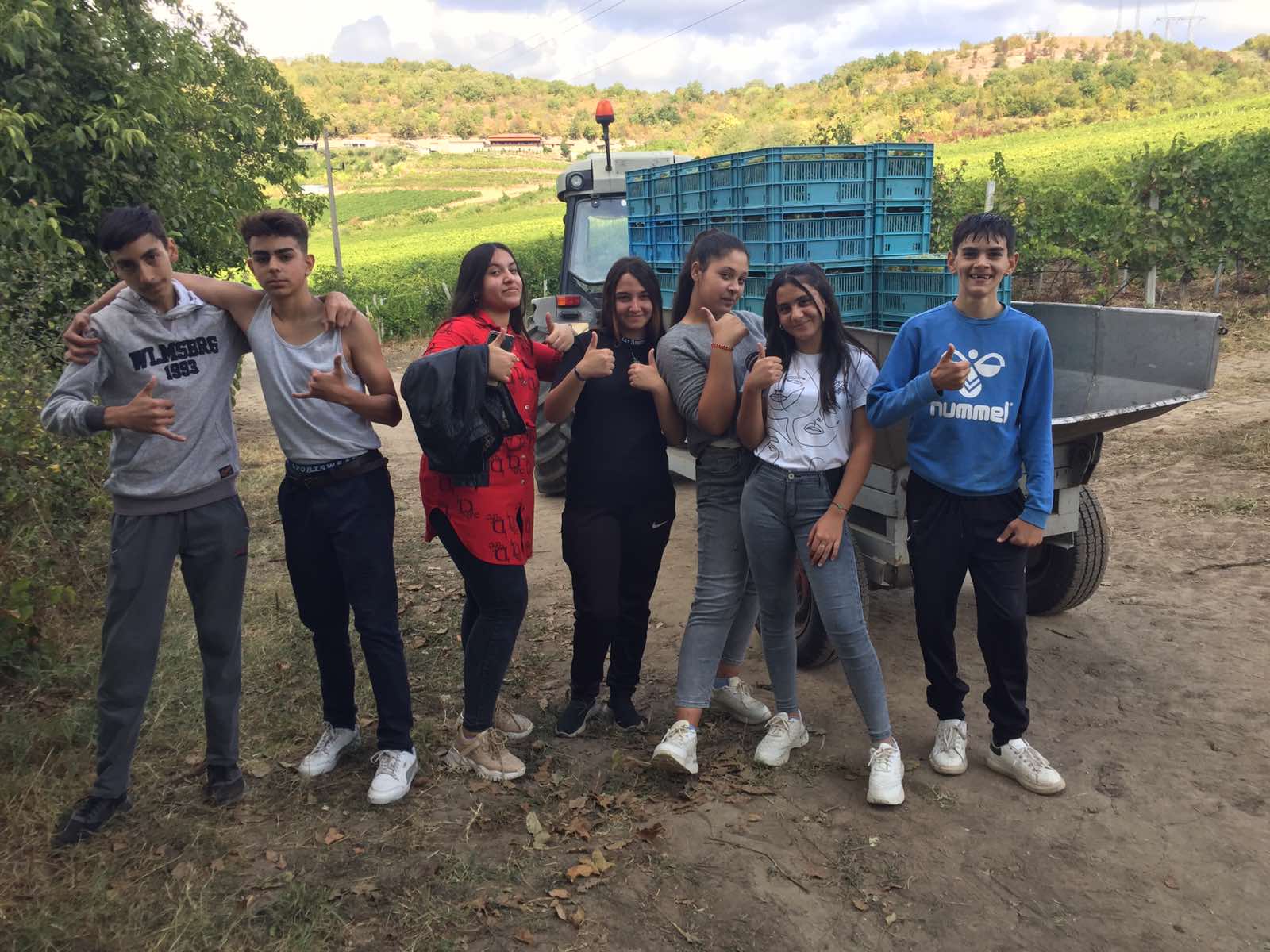 На 23.09.2022 г. учебната практика на ученици от VІІІ клас се проведе в с. Блъсково, на лозов масив от винени сортове.Там на учениците беше показан процеса на гроздобер: първо се откриват чепките, част от листната маса се премахва, реже се чепката грозде и се поставя в щайга. На учениците бе дадена възможност да вземат участие при брането на гроздето. На всяко дете беше дадена по една празна щайга, която те напълниха. Учебната практика завърши с едно добро дело, а именно всички ученици от 8-ми клас, задружно набраха една щайга грозде за най-малките малчугани на нашето училище – децата от подготвителна група.