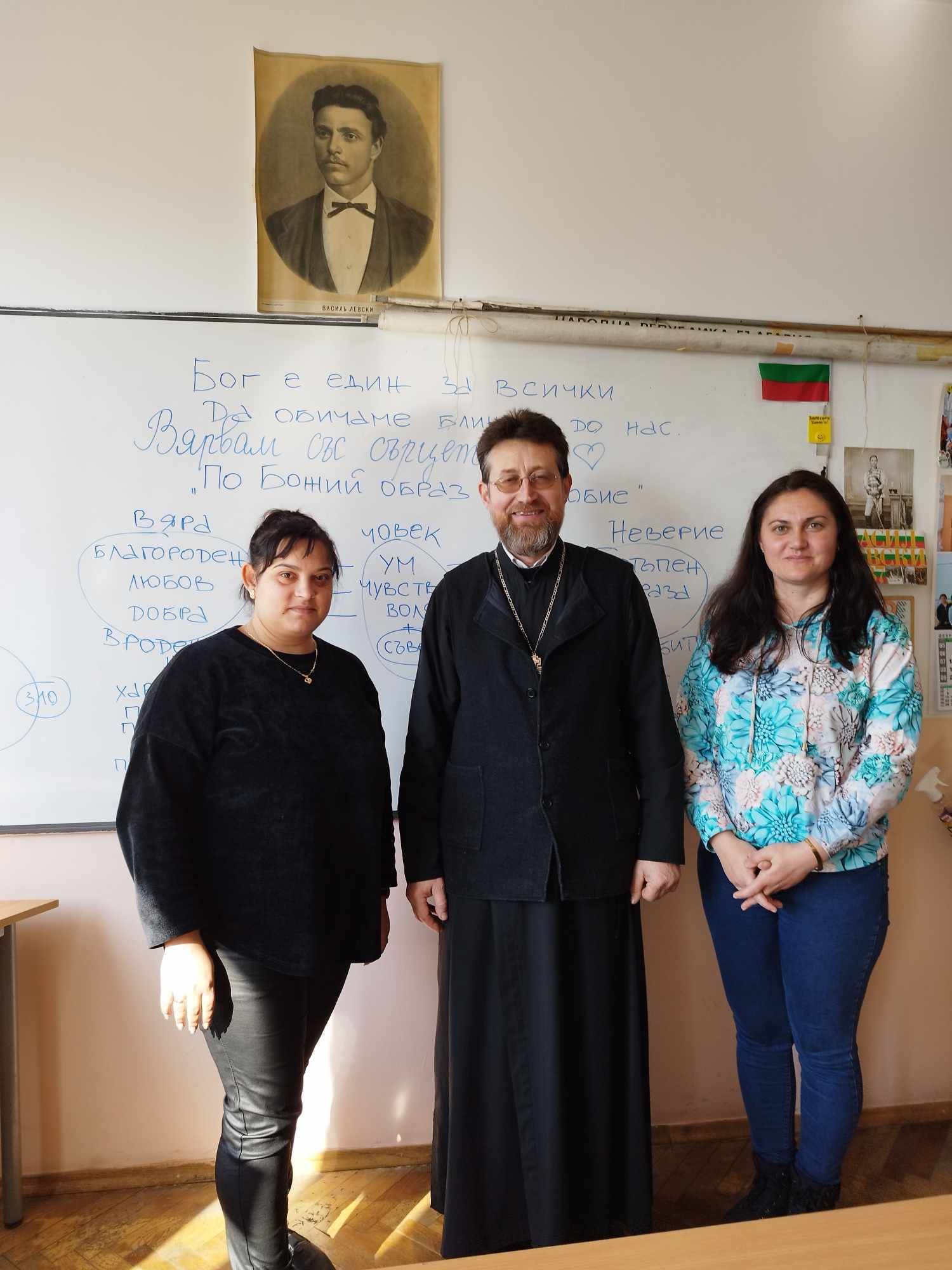 На 20.02.2024 г. се проведе среща-разговор на тема „Вярвам със сърцето си“ с ученици от клуб „Религия и съвремие“ при ОбУ “ Васил Левски“ с. Михалич. Гостува им свещеник Станислав Друмев, който говори непринудено, на близък до децата език на теми за вярата, за доброто и злото, за милосърдието и грижата за ближните. Отец Станислав отговаряше на детските въпроси, обясняваше и нагледно на дъската чертаеше схеми като един истински духовен учител. Накрая на срещата всички достигнаха до извода, че вярващият човек е този, който носи Бог в сърцето си, умее да прощава, обича и помага на другите и винаги „Благодари“ на Бога.