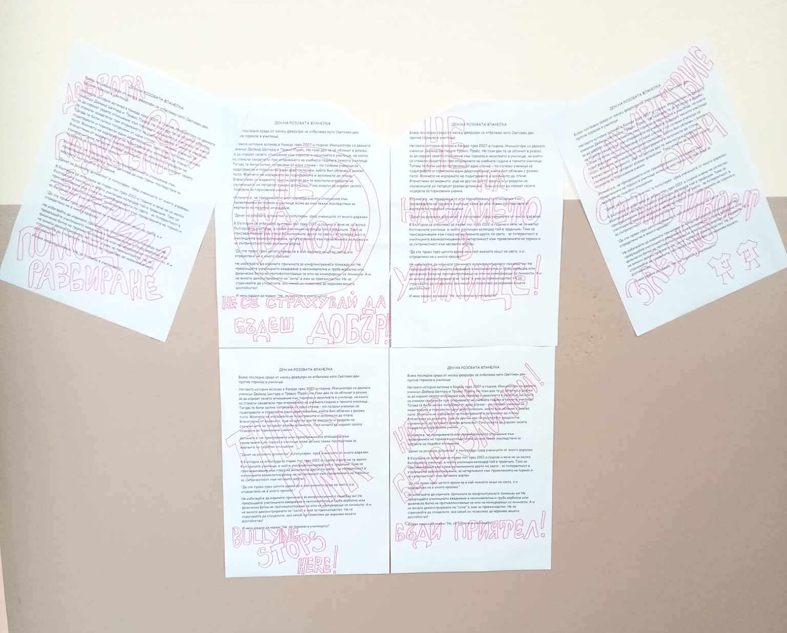 Учениците от ОбУ „Васил Левски“ отбелязаха деня за борба с тормоза в училище – „Ден на розовата фланелка“. На този ден всички, съпричастни с темата, се обличат розово, за да изразят своята позиция. Фланелката и цветът символизират неприемането на тормоз и насилие в училище. И днес всички ученици и учители от ОбУ „Васил Левски” казаха “Не на тормоза в училище”,облечени в розово. В беседи и разговори те обсъдиха проблемите за тормоза в училище и семейството, за необходимостта да бъдем съпричастни и да не затваряме очите си, когато някой е подложен на насилие и унижение.