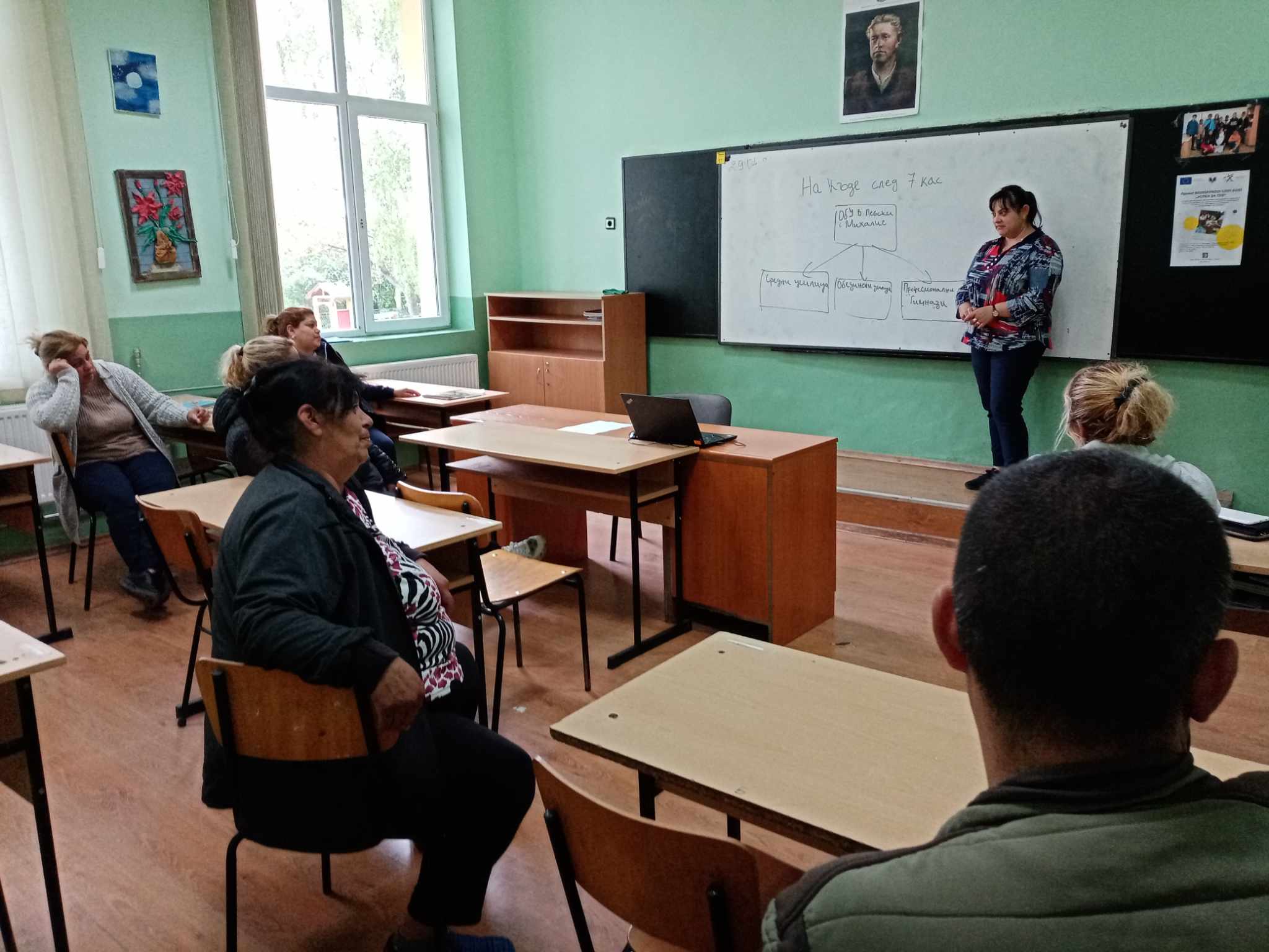 На 29.04.2024 г. образователния медиатор Айше Раимова проведе интензивна работа с родители по проект „Успех за теб“ на тема: „Накъде след 7 клас“ с родители на ученици от 6 и 7 клас. Тя представи училищата от общините Вълчи дол, Суворово и Ветрино, където децата им могат да продължат образованието си и да получат диплома за средно образование с възможно най-добро качество.
