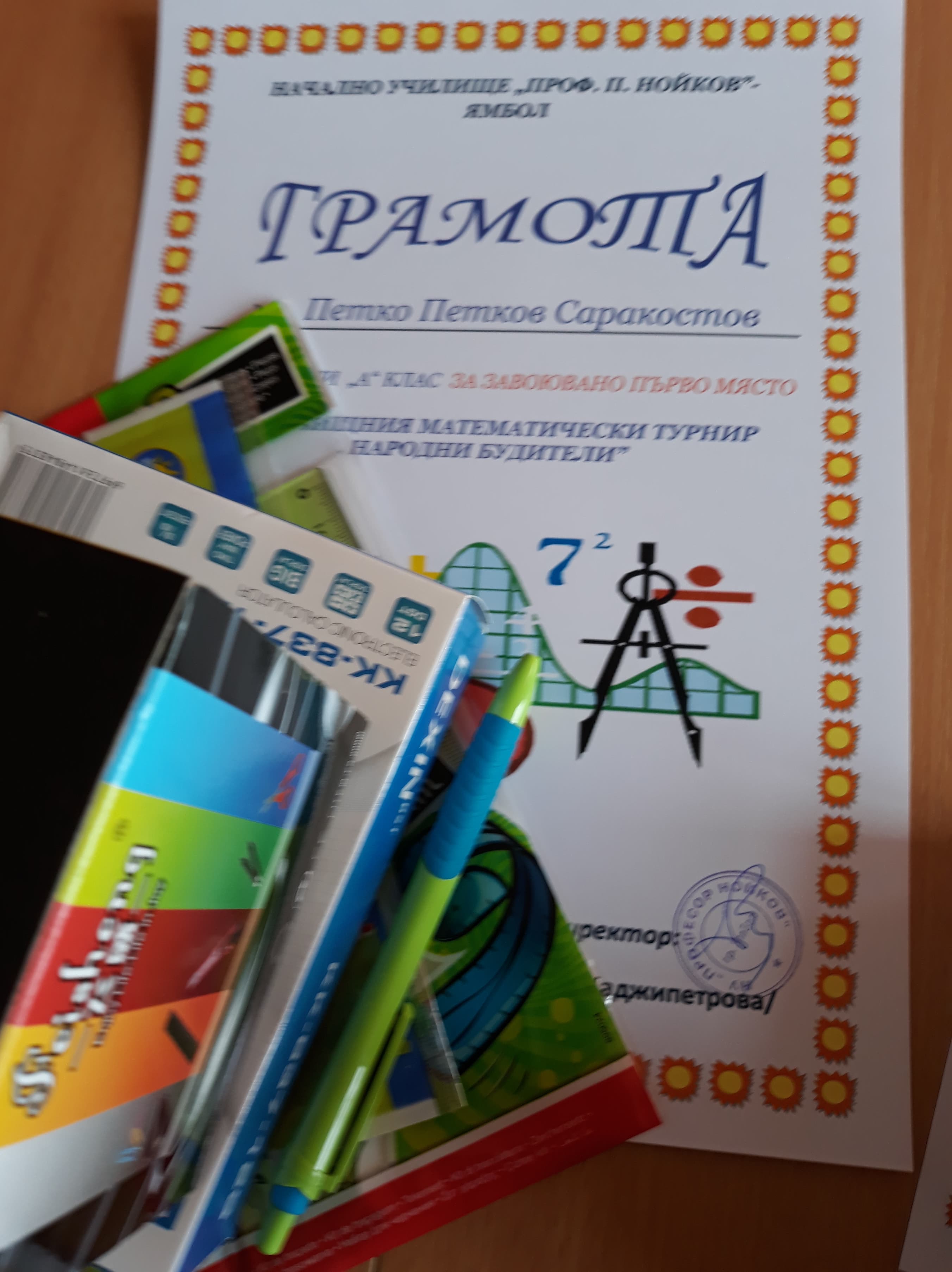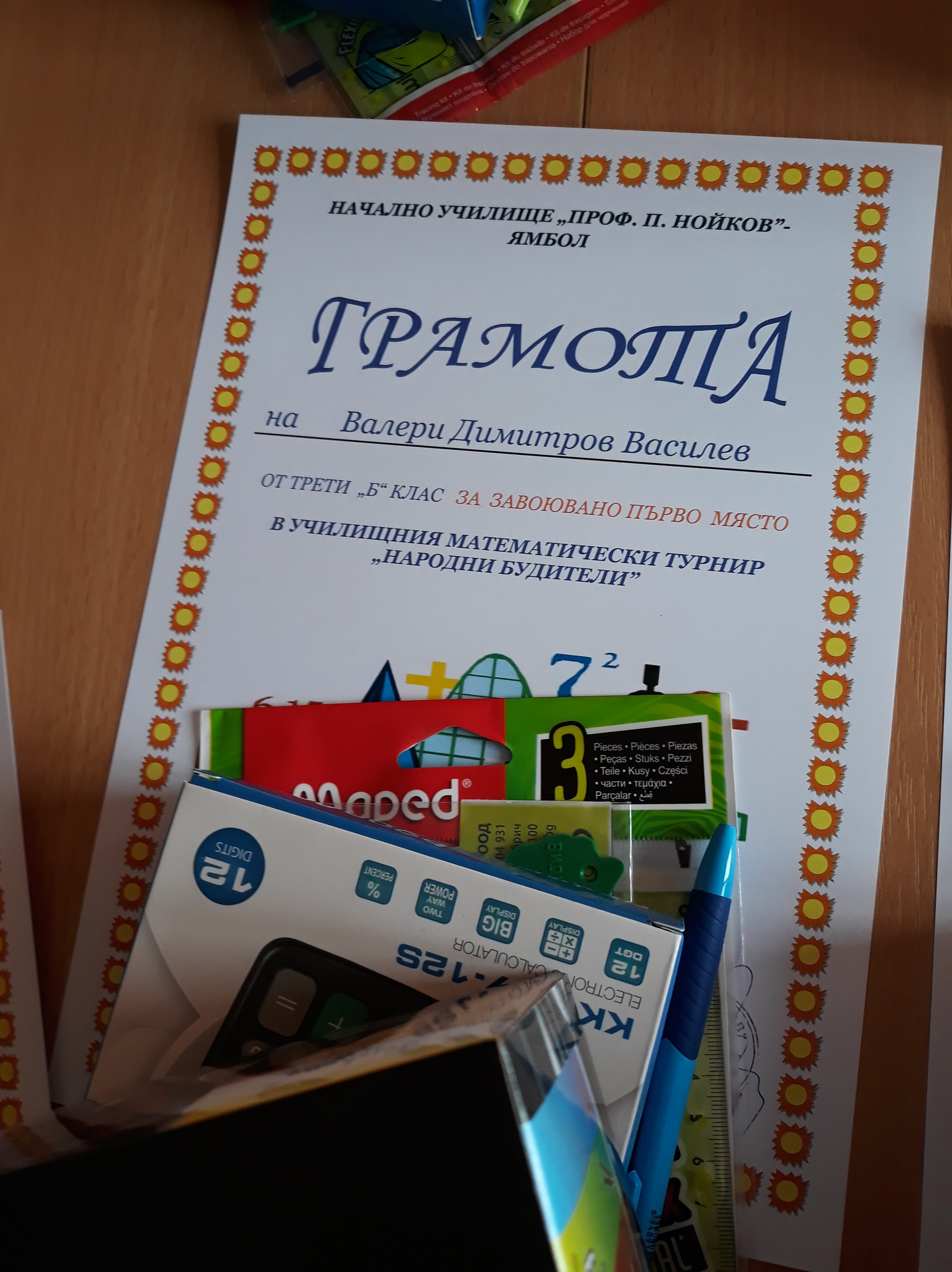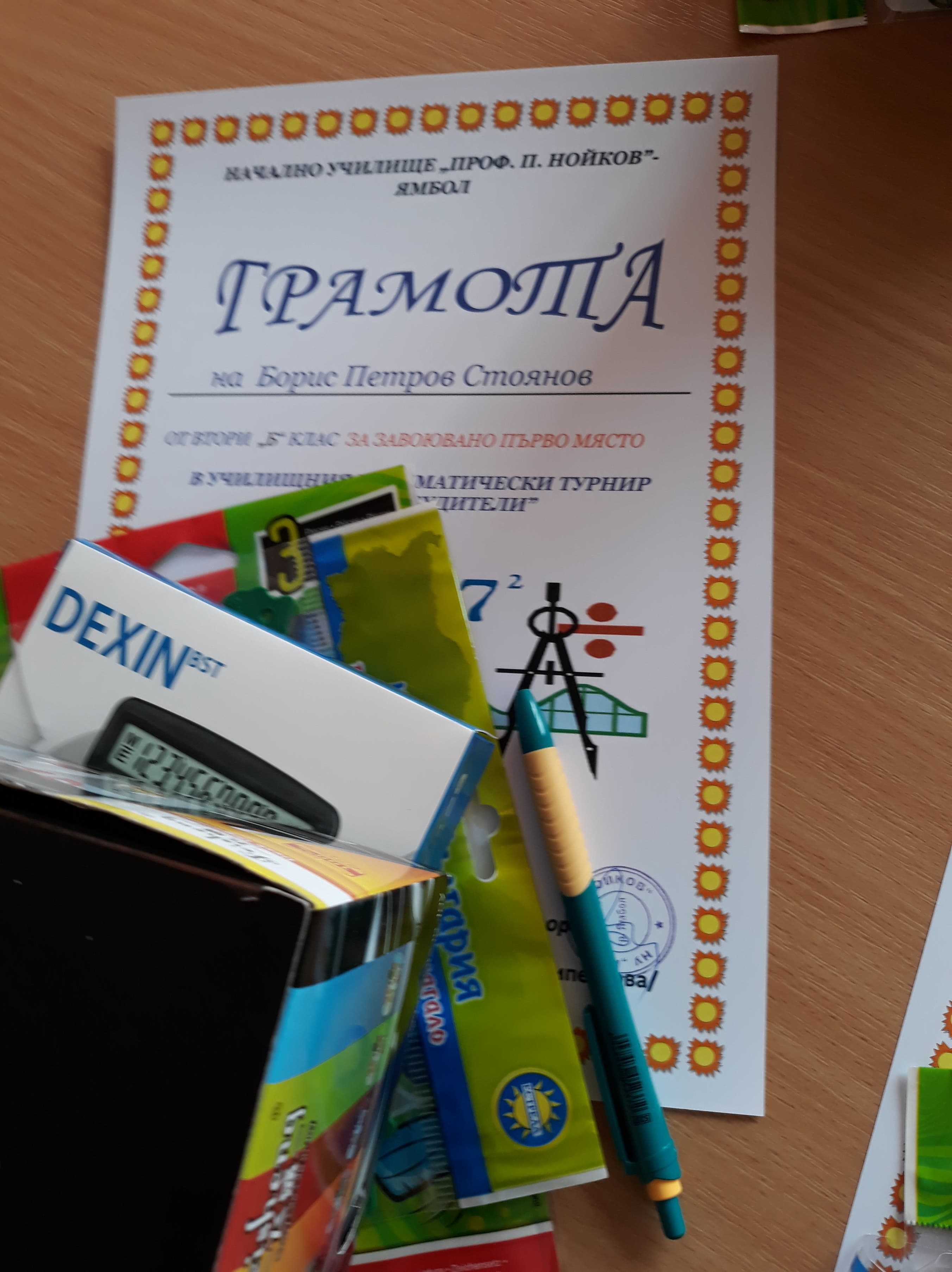1 място- Борис Петров Стоянов-2 б кл.